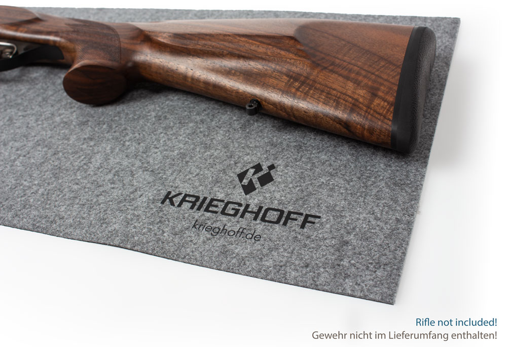 The Krieghoff logo is printed on the lower left edge, the www.krieghoff.de lettering is printed on the lower right edge. Perfect for presentations of Krieghoff arms and stocks. Protects youzr guns during rapair and maintenance.